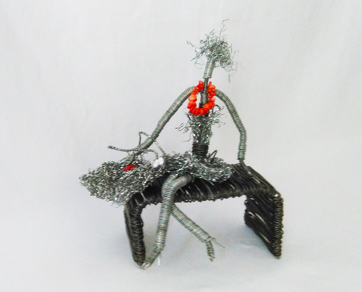 Materials: Galvanized wire, dark brown construction wire, fencing mesh and and beads.