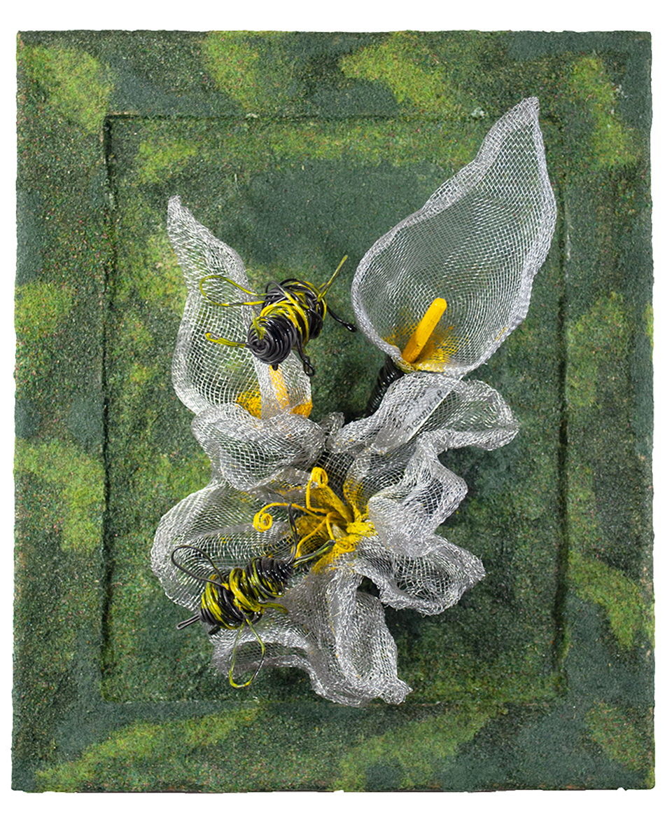 Materials: Aluminum mesh, construction wire, wood, colored grass Noch.